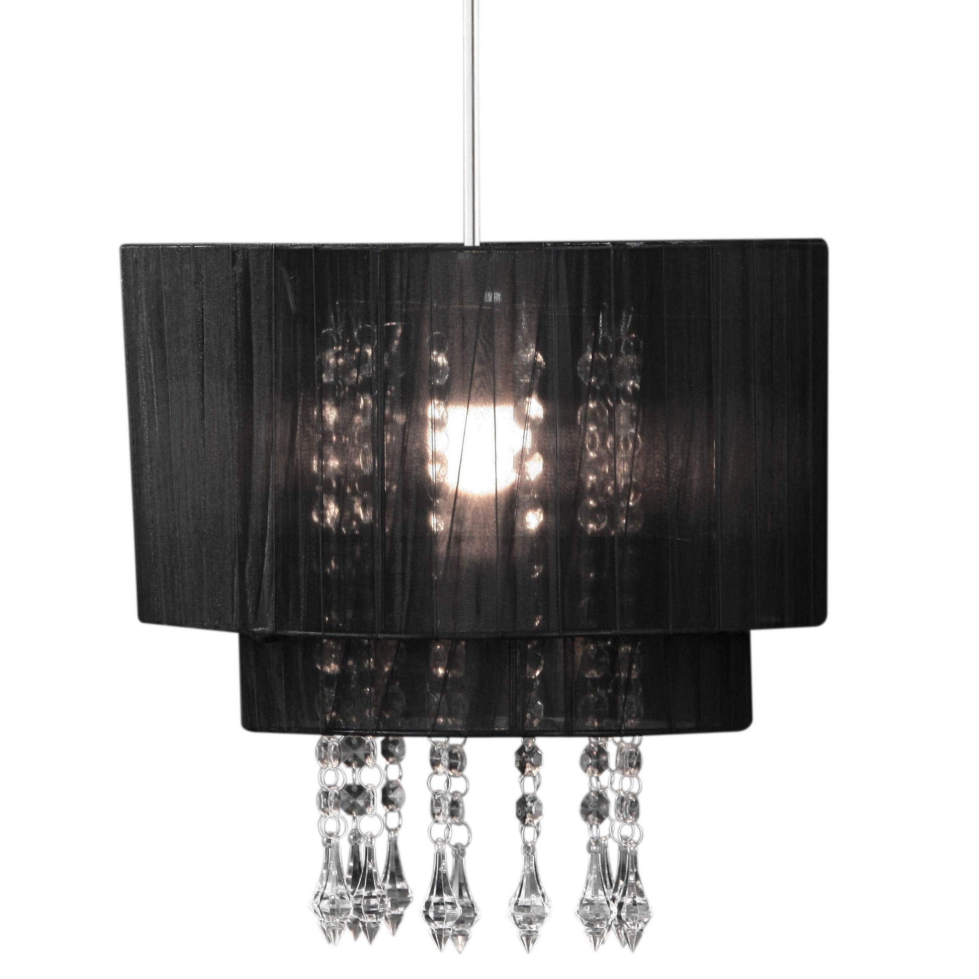 Introducing the Premier Housewares 2501130 Riband Voile Beaded Pendant Shade in sleek black. This elegant lampshade is the perfect addition to any room, adding a touch of sophistication and style.