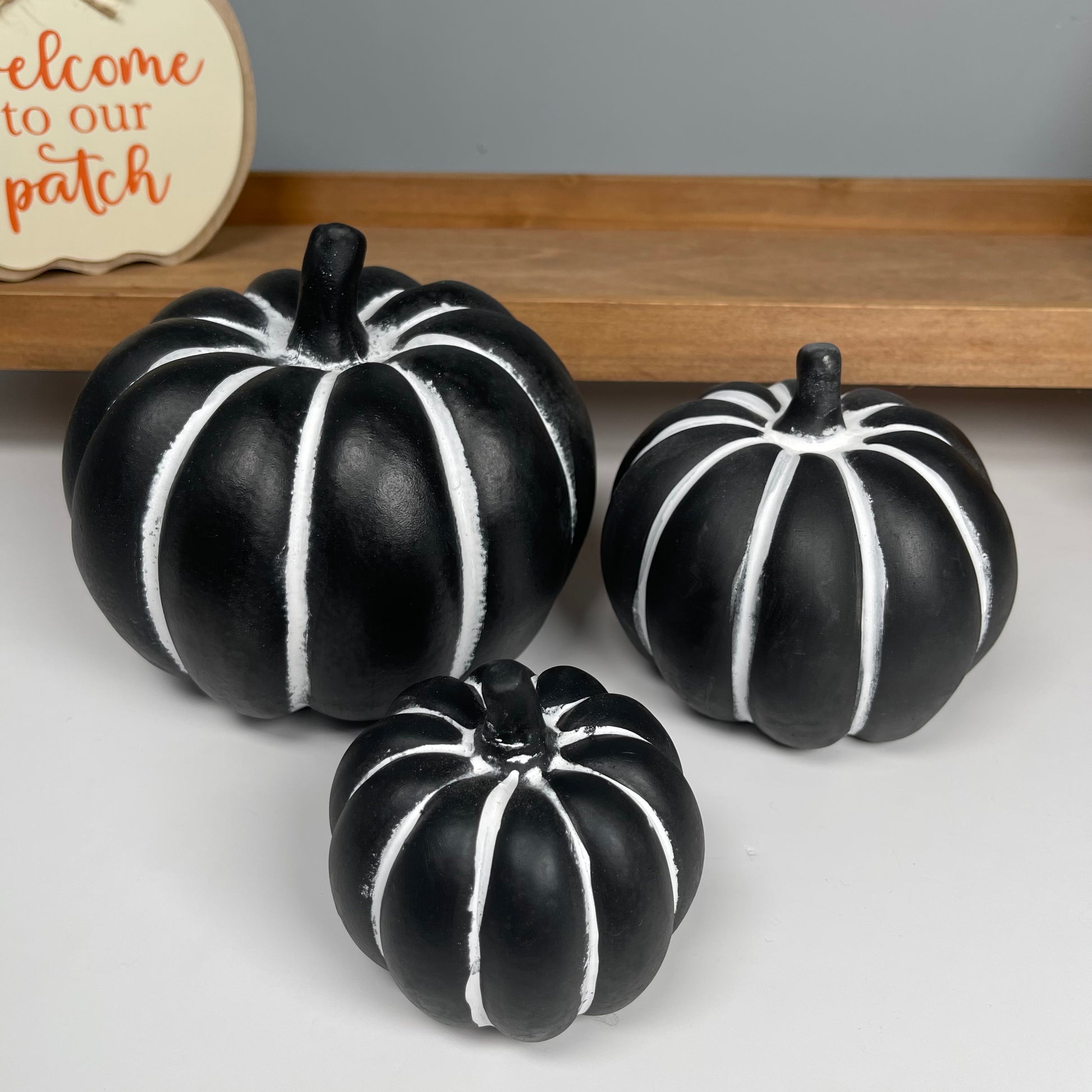 Create a beautiful autumnal centerpiece with our Black & White Cement Pumpkin.