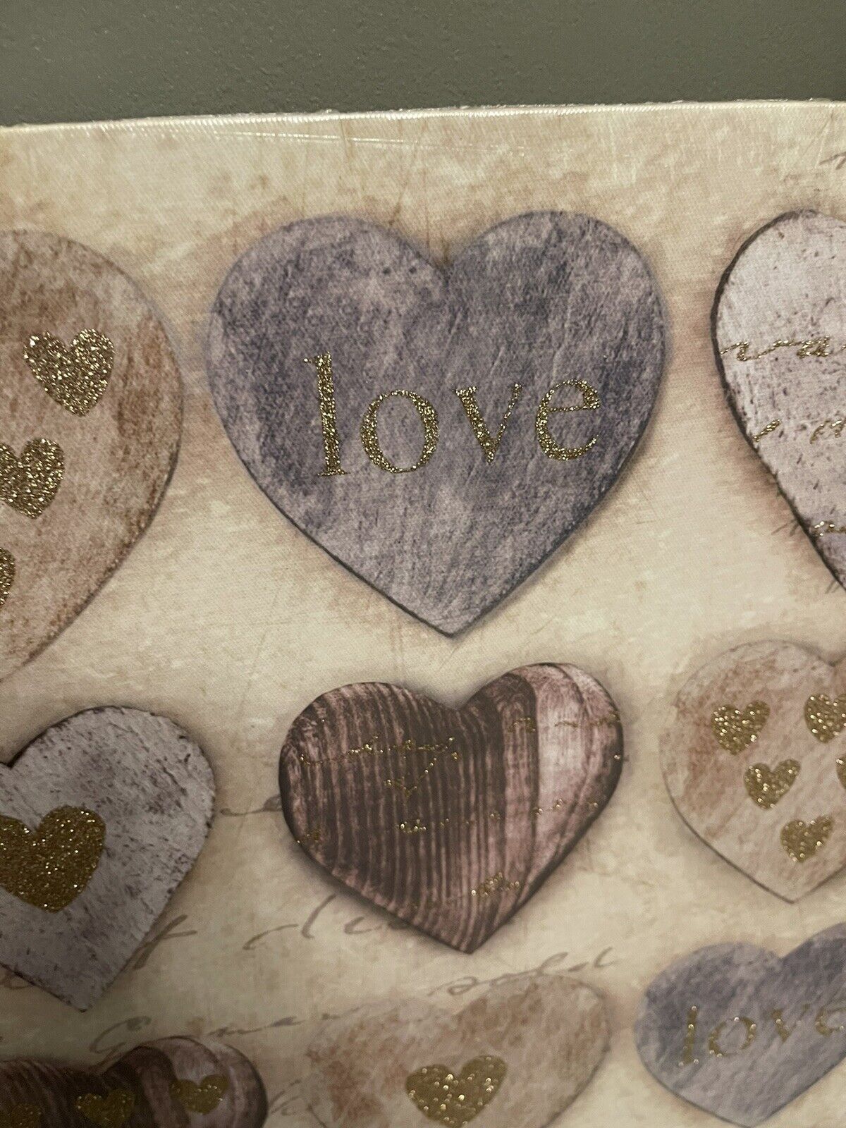 Glitter Hearts Love Printed Canvas Wall Art Hanging Picture 48cm RRP £20