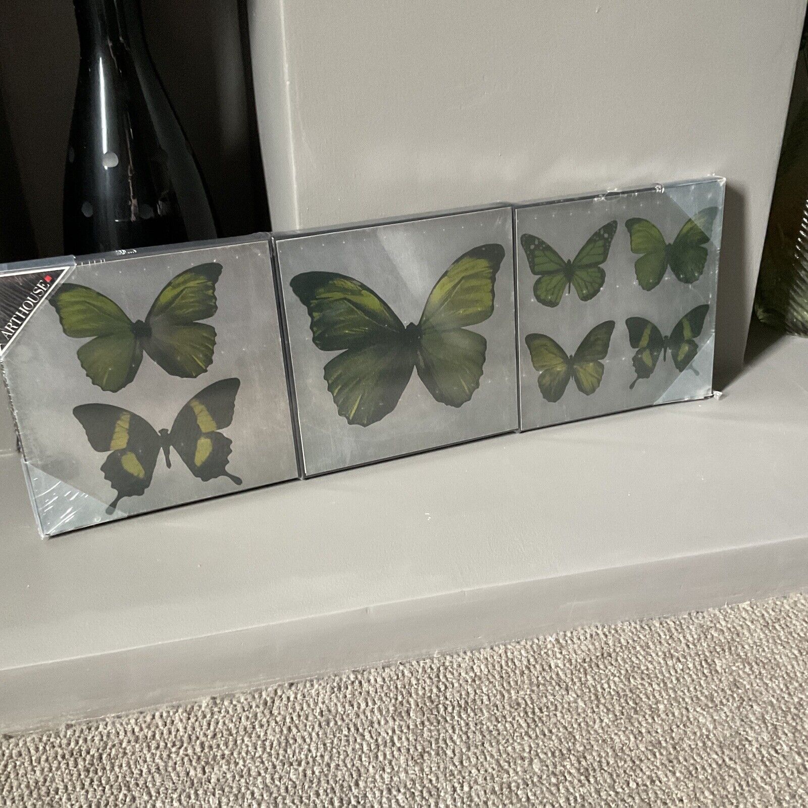Green Butterfly Canvas Set of 3 Each Size 25 X 25 Home Decorative Gift RRP £35