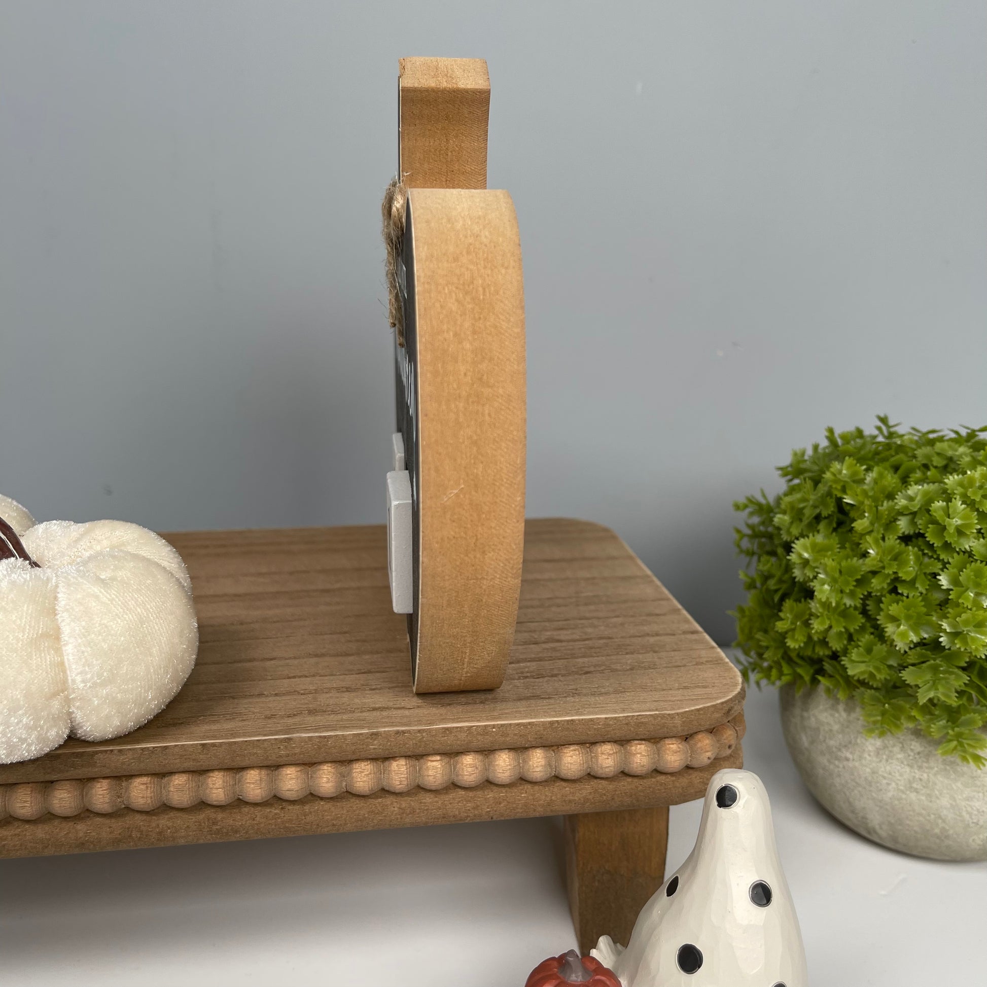 This festive wooden block is designed in the shape of a pumpkin and is sure to add to your spooky home decor.