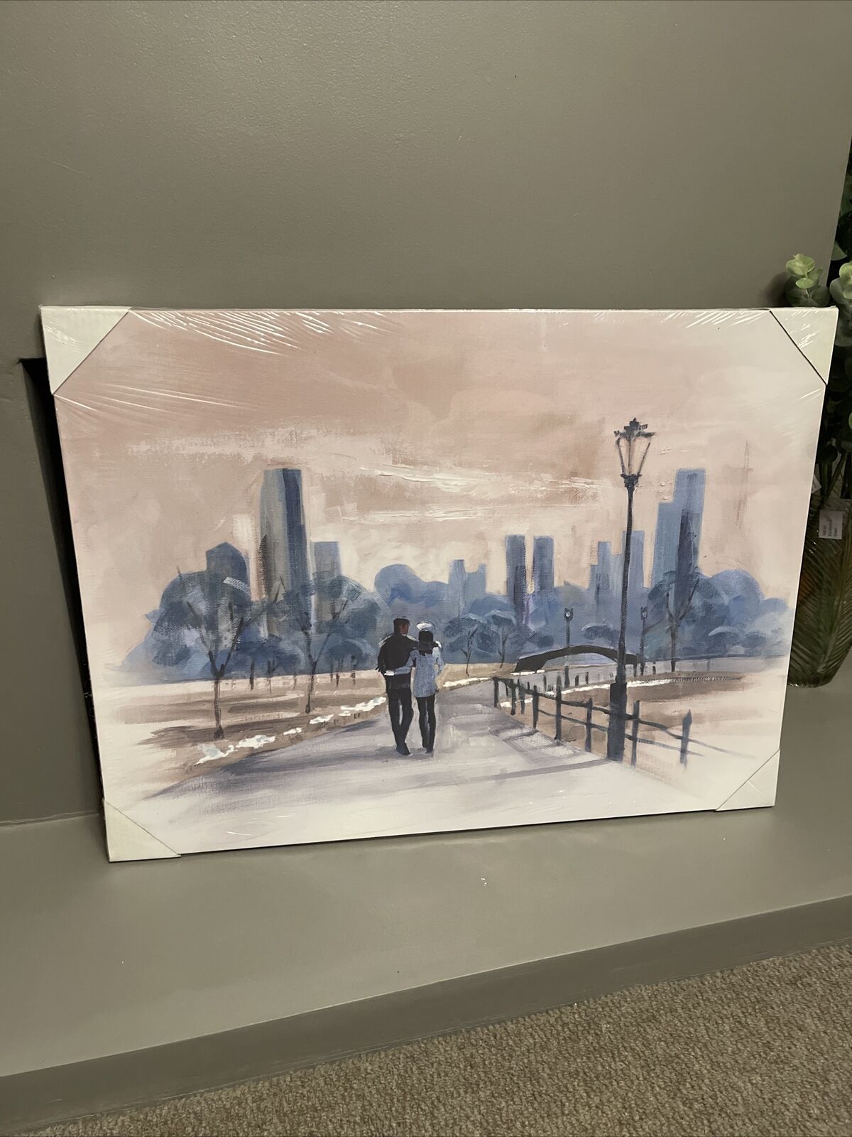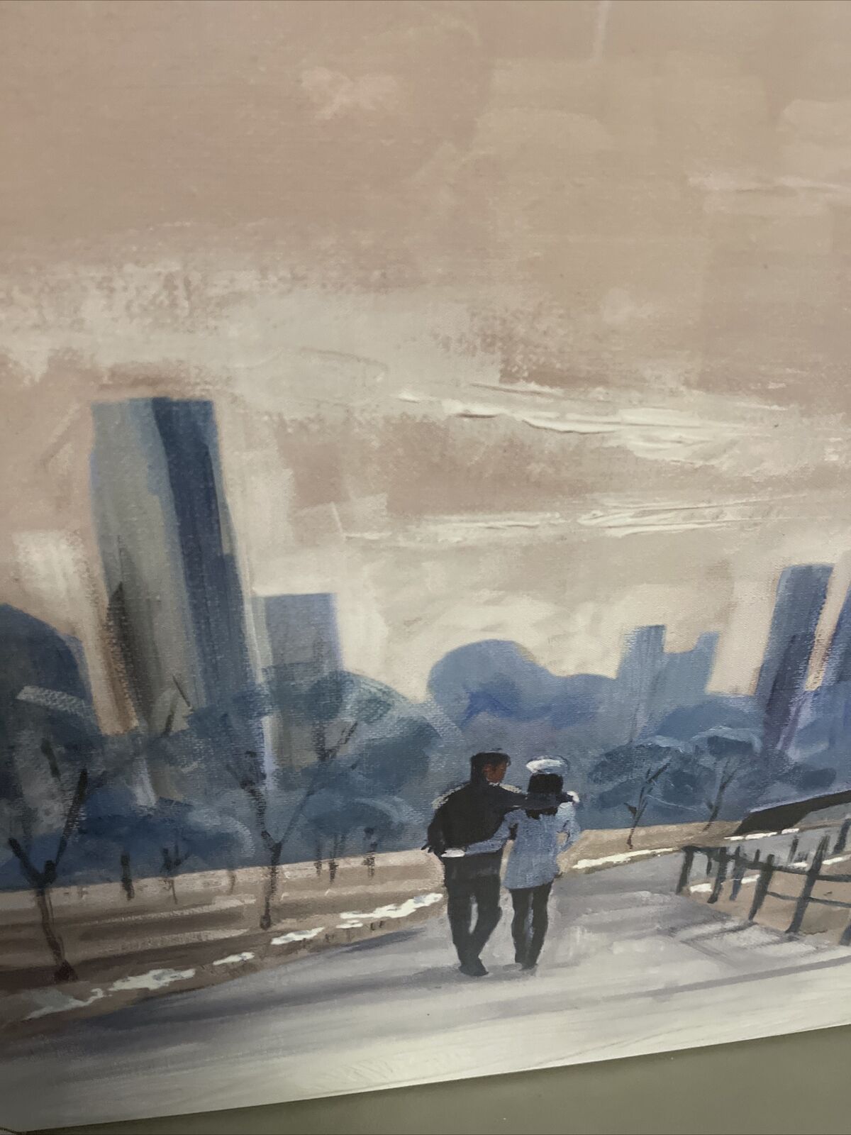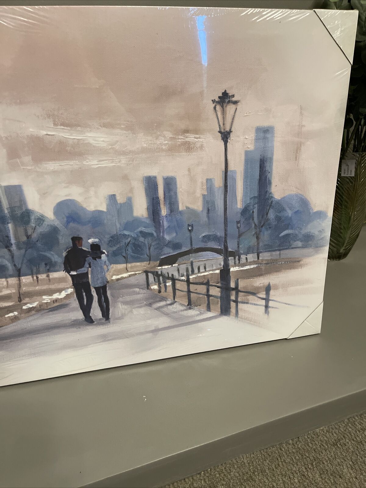Paris Cafe Blue Black White Printed Canvas Wall art Picture 60 X 80 RRP £39.99