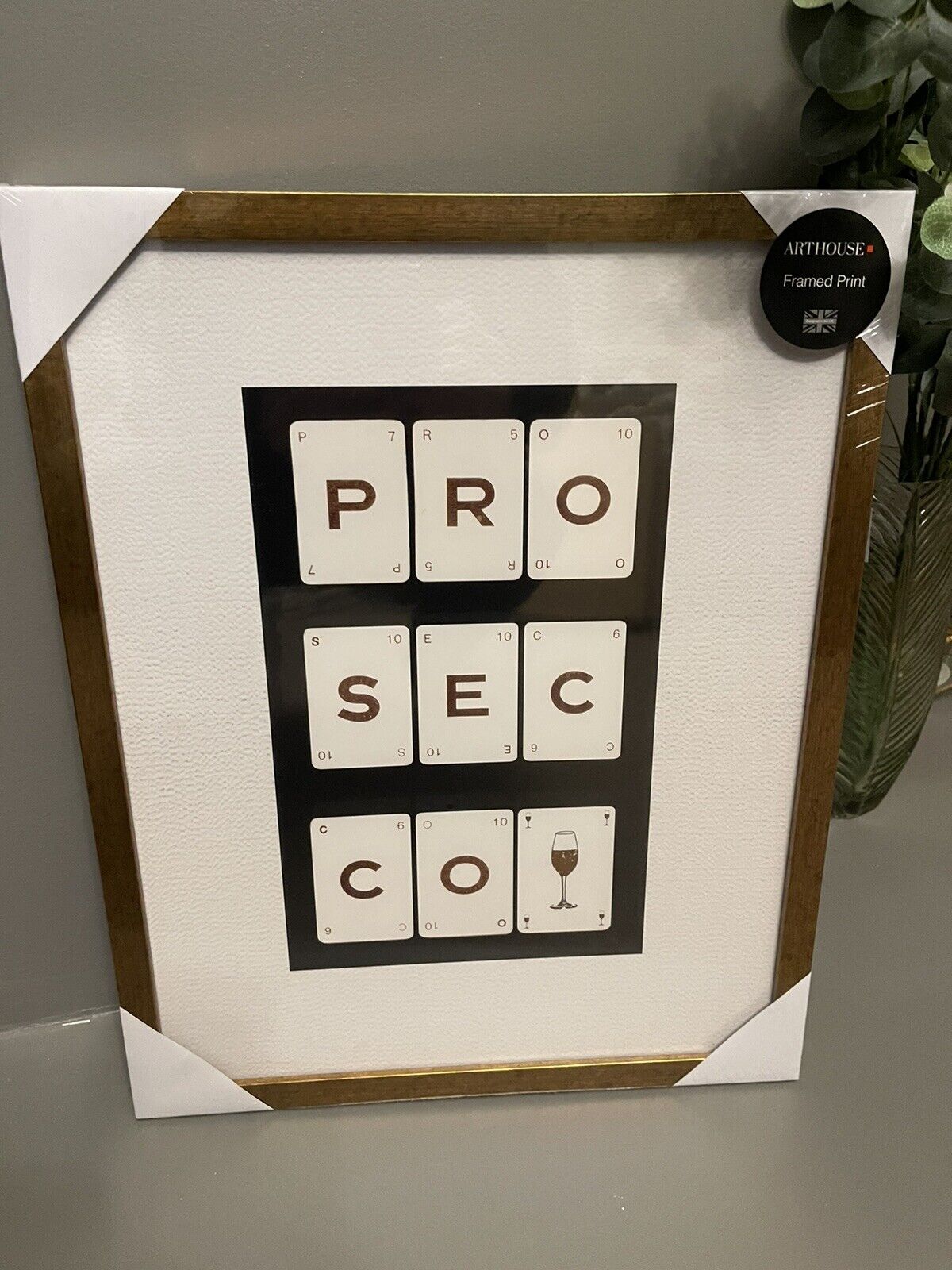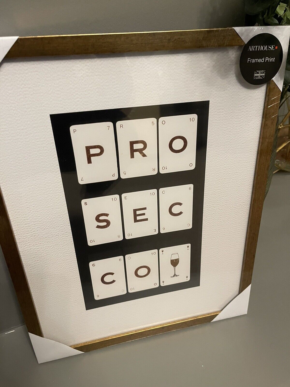 Prosecco Gold Glass Framed Hanging Wall Art Print Home Decor Size 40 x 5RRP £35