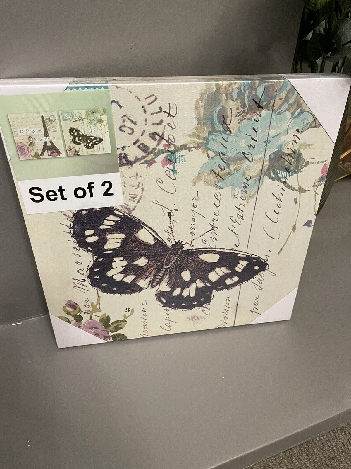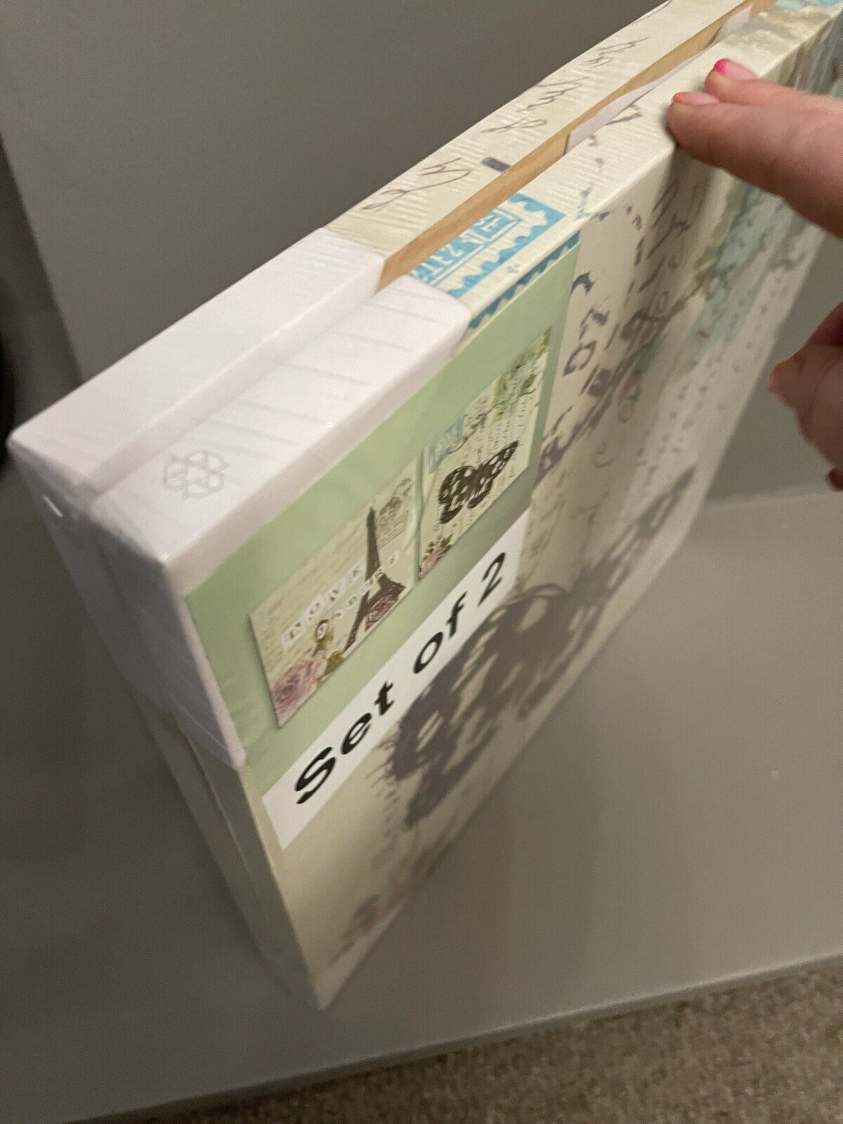 Set of 2 Parisian Collage Printed Canvas Wall Art Hanging Picture 40cm RRP £30