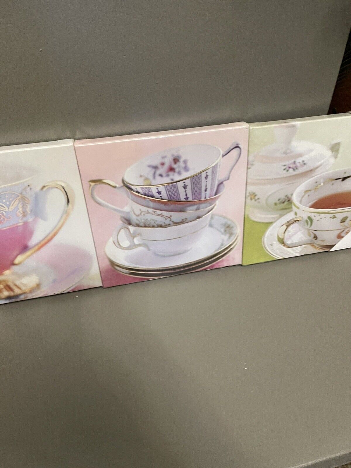 Set of 3 Vinatge Tea Cups Printed Wall Art Canvas Pictures RRP £20.00