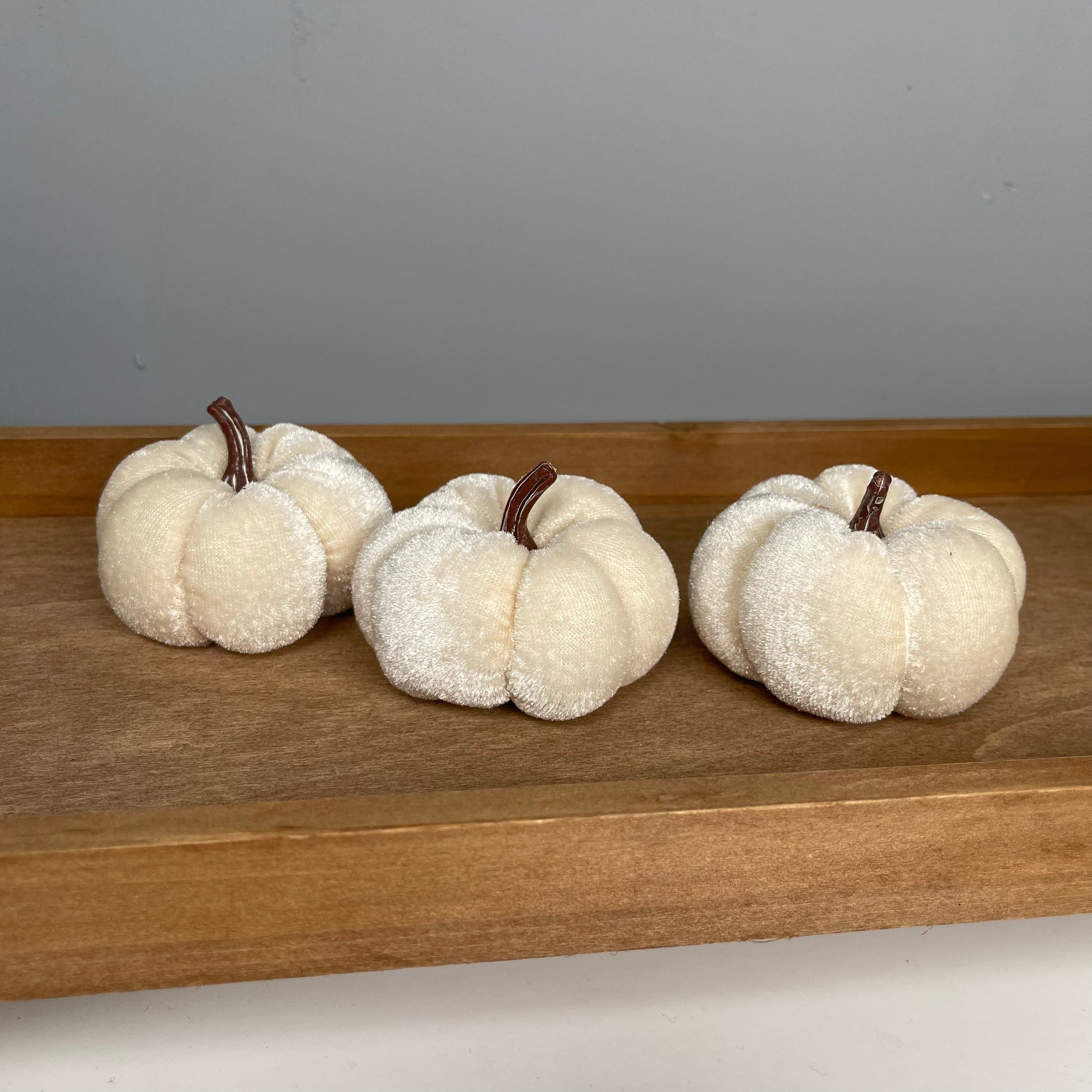 Bring the warmth and beauty of autumn to your home with these charming faux velvet mini pumpkins.