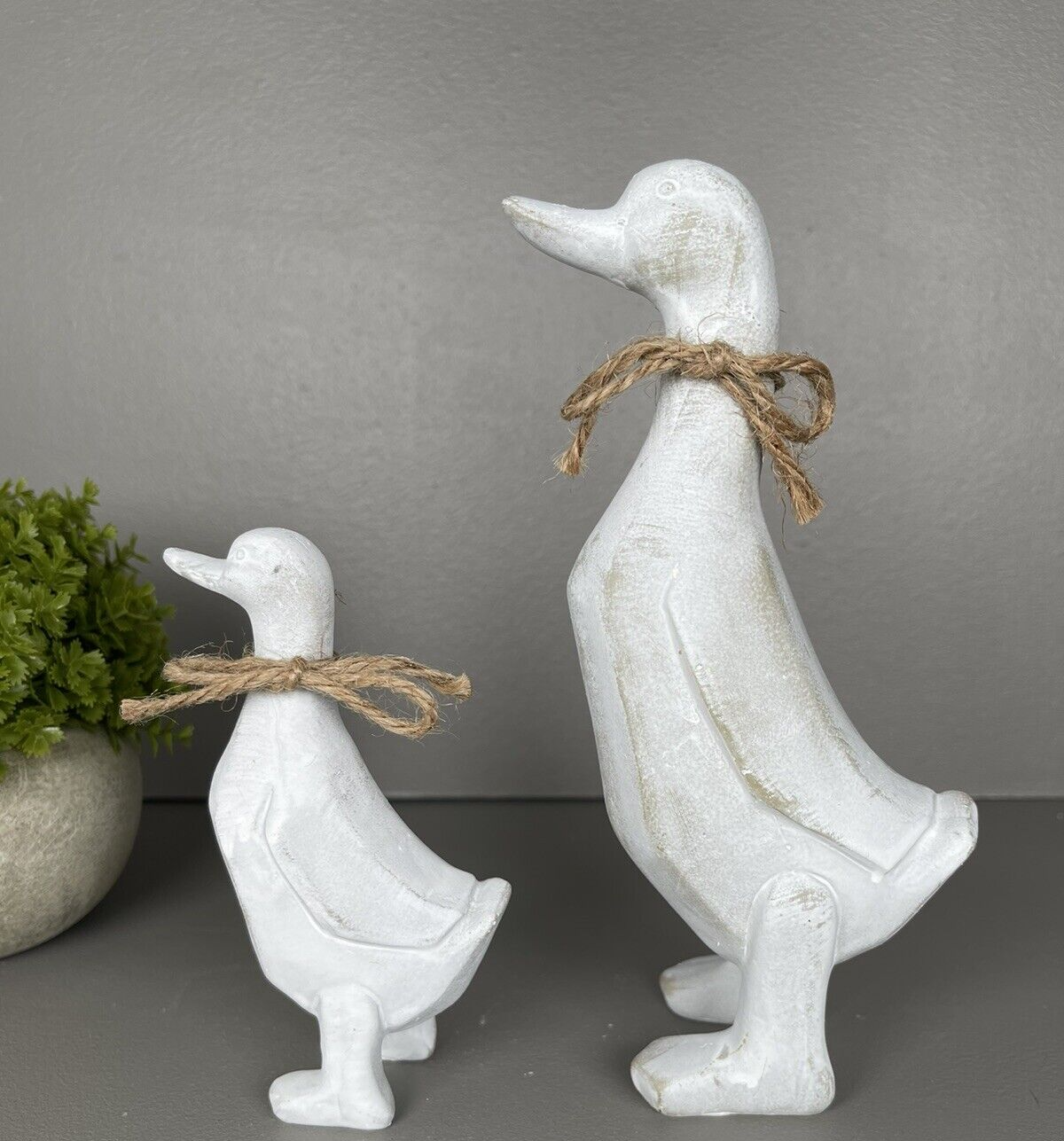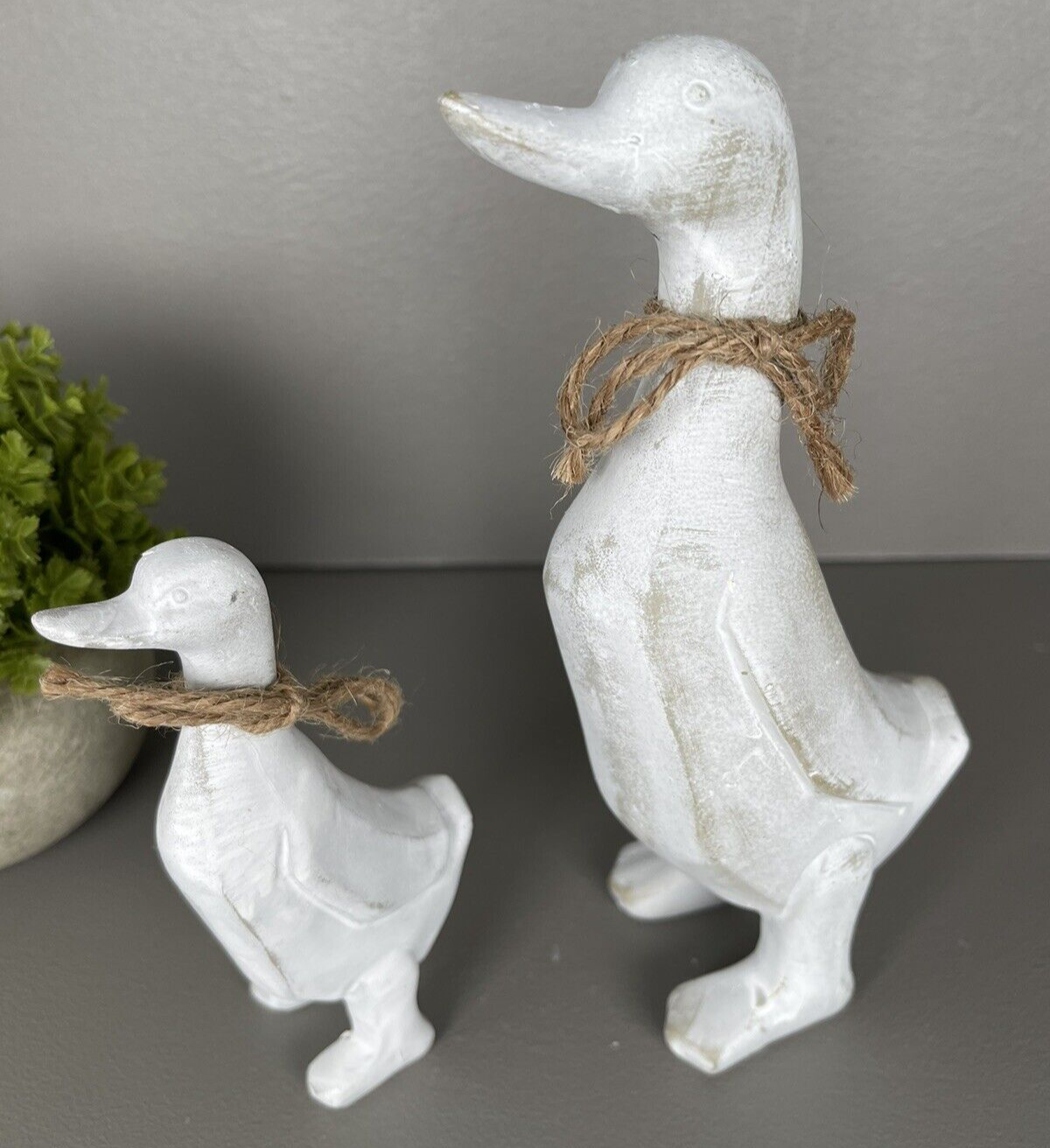 White Rustic Duck & Duckling - Set of 2